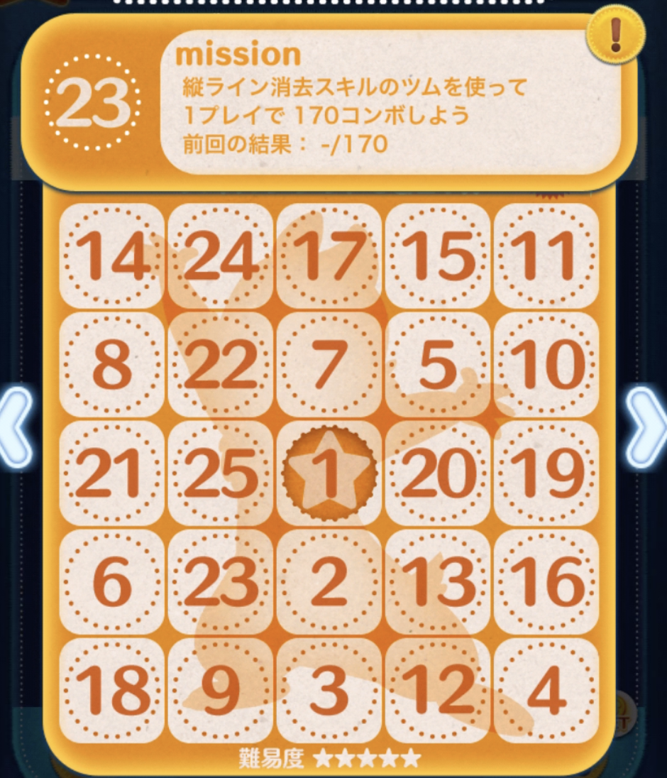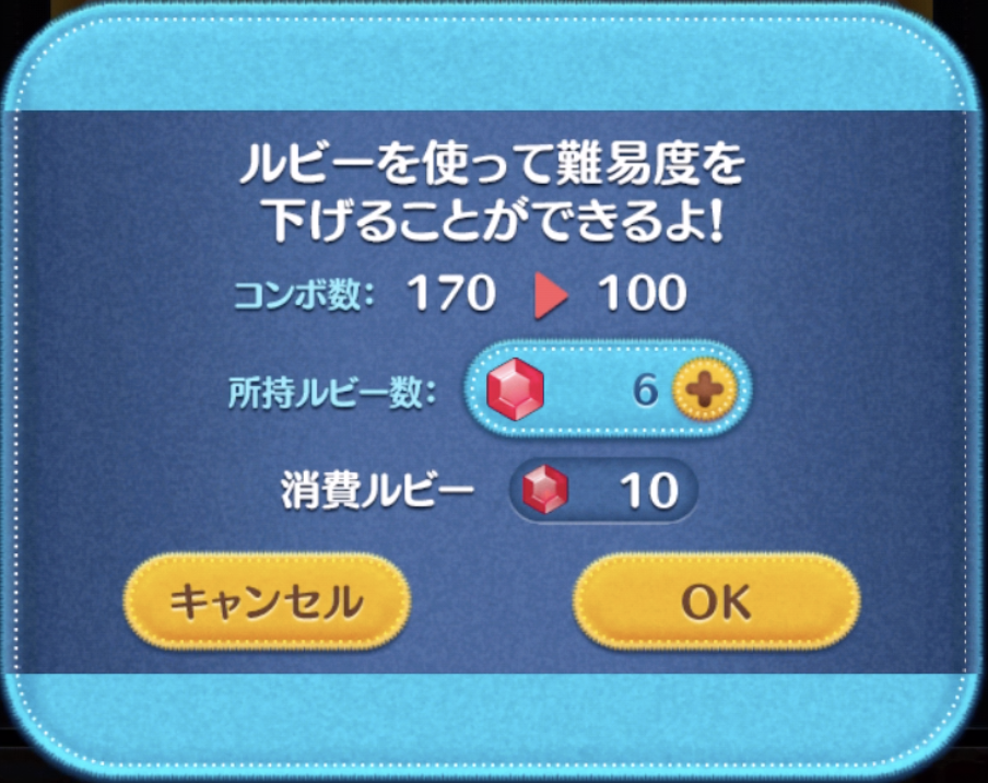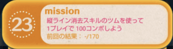 例えば「縦ラインのツムで170コンボ」の場合、ミッションアシストで難易度を下げると「100コンボ」でクリアできることになります。