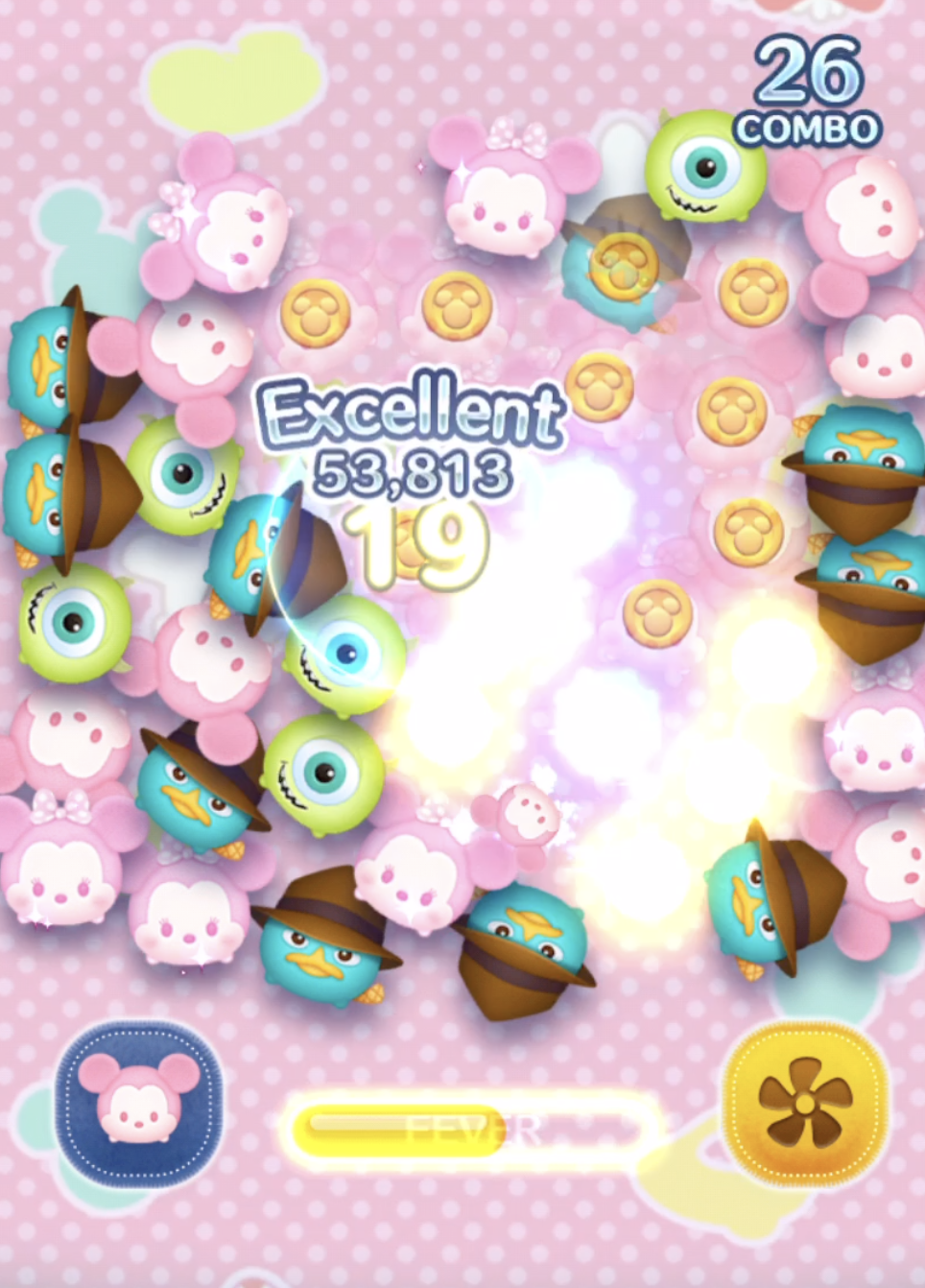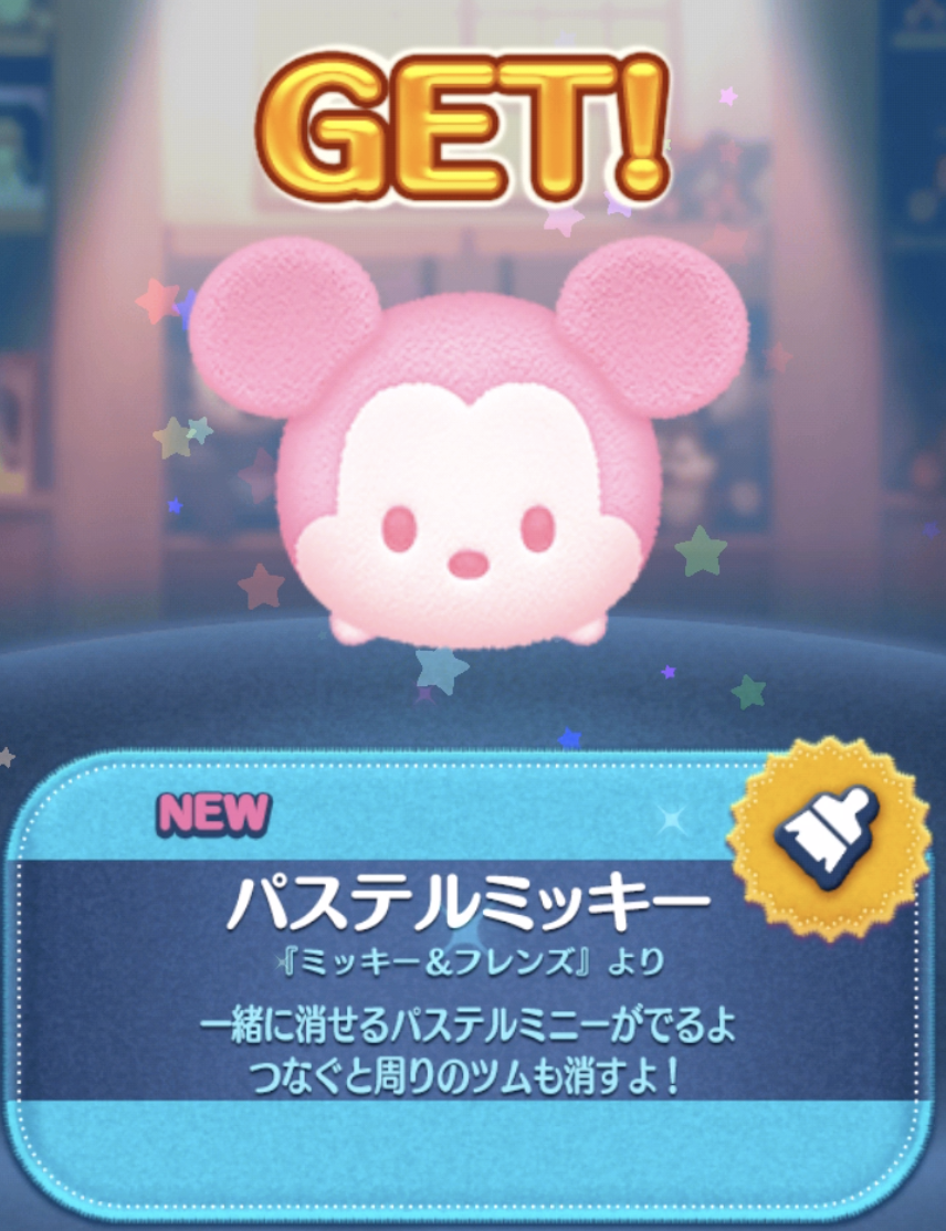パステルミッキーは、一緒に消せるパステルミニーがでるよ 繋ぐと周りのツムも消すよ!という特殊系。
