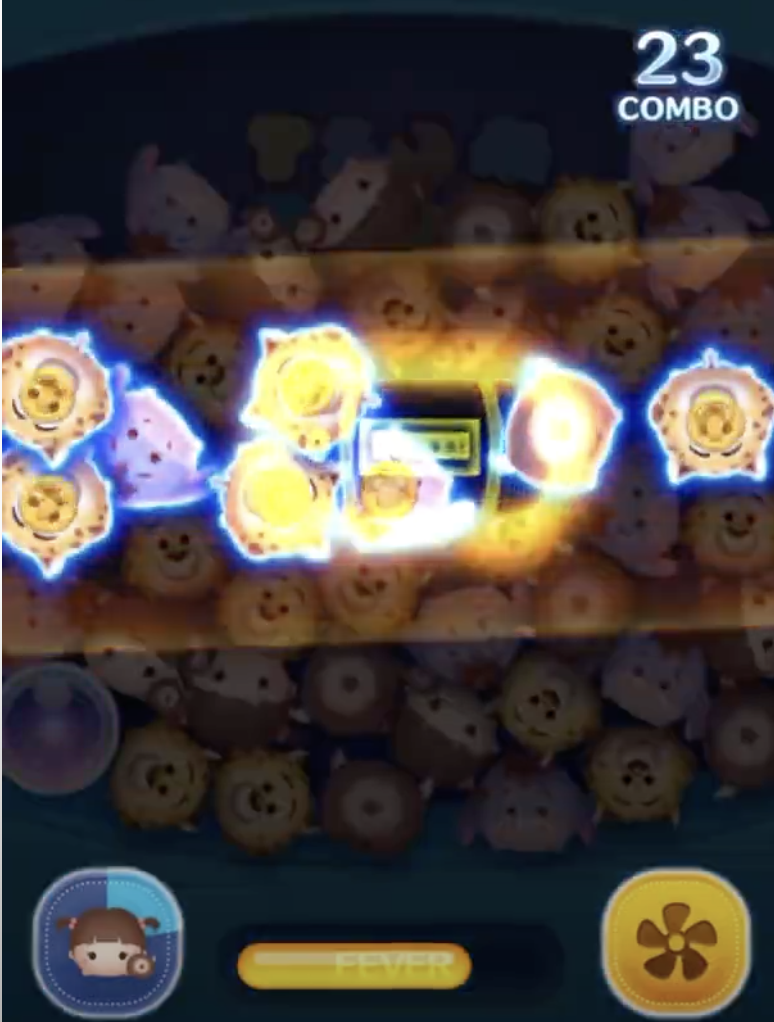 ちなみに、すぐにボムをタップするのはツムが落ちきっていない状態で縦ラインを狙うと、画面上に見えないツムも消すためです。