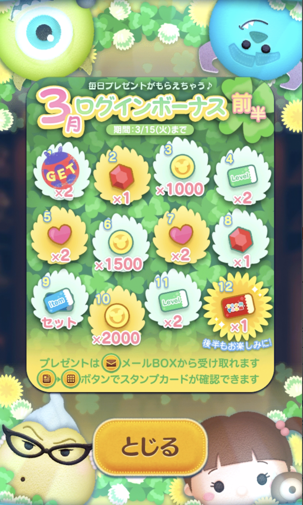 LINEディズニー ツムツム(Tsum Tsum)では、2022年3月1日より「ログインボーナス前半」が開催されます。