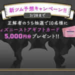 抽選でディズニーストアギフトカード5000円分が当たります。