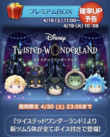 動画から察する通り、来月4月の新ツムはツイステシリーズから登場することが確定!そして特設サイトもオープンしました。