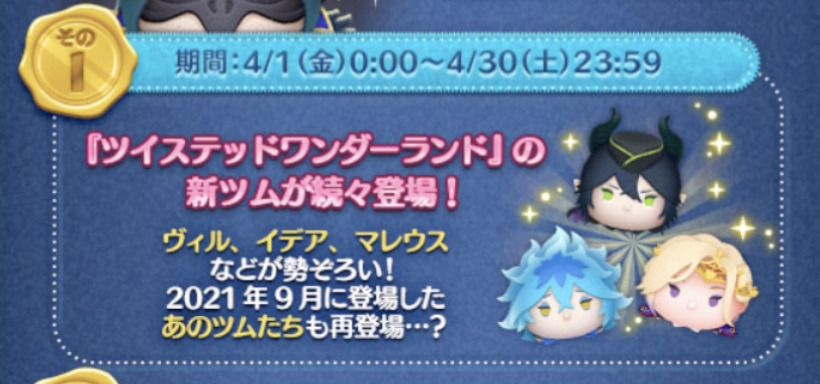 なお、4月が全部ツイステコラボになるとしたら月初め〜半ばに来る新ツム第2弾第3弾もツイステのツムになるのではないでしょうか。