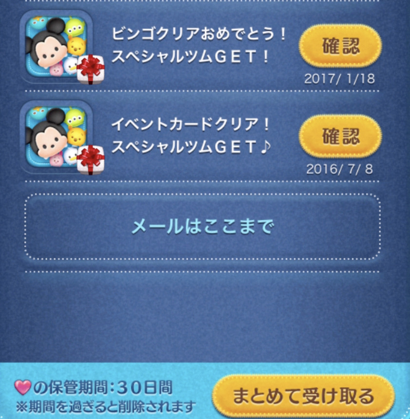 【ツムツム】バージョン1.104.0よりメールBOX表示件数変更で中身が全て見られるように改善