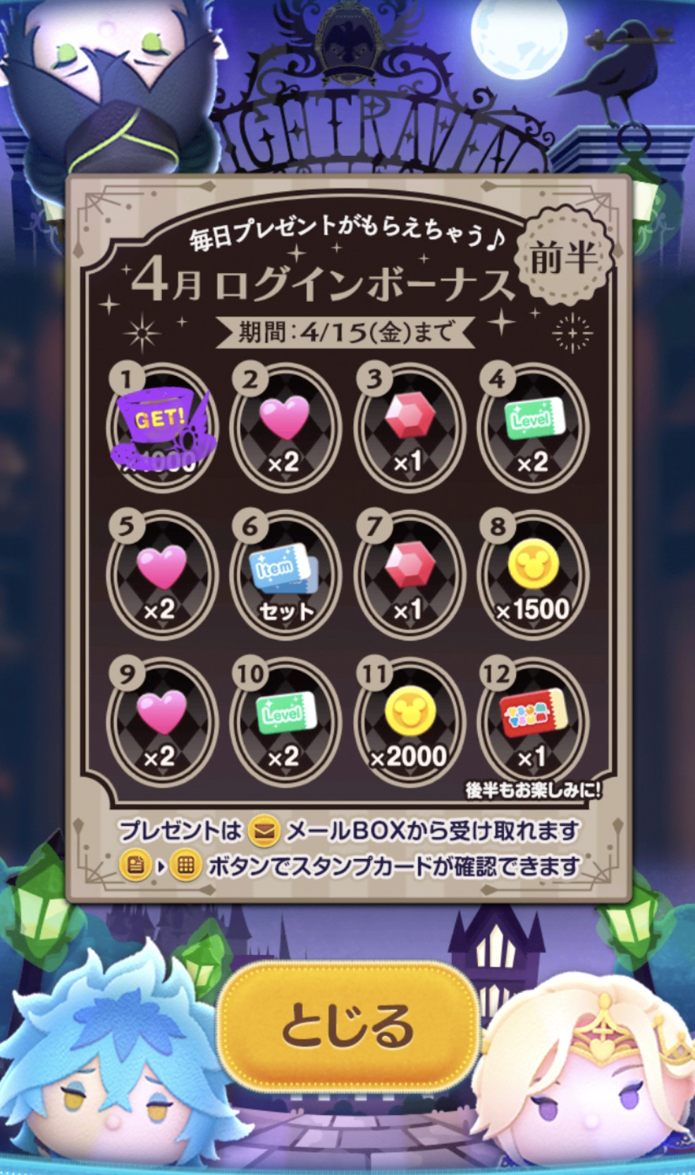 4月15日まで12日ログインしよう