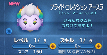 「プライドコレクションアースラ」のスキル上げに必要なツム数です。