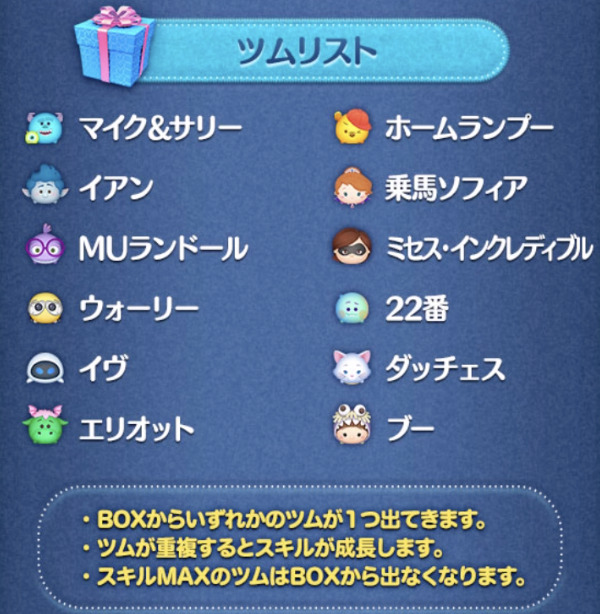 これにより、セレクトBOXのツムの確率も表示されることになります。