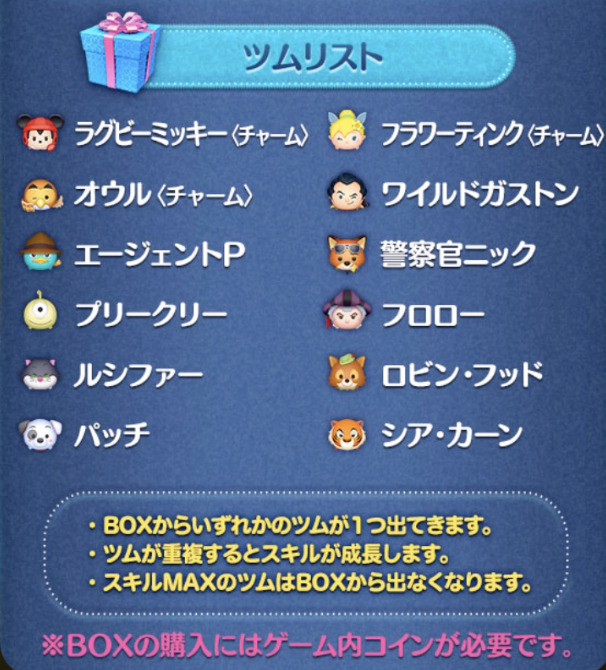 これにより、セレクトBOXのツムの確率も表示されることになります。