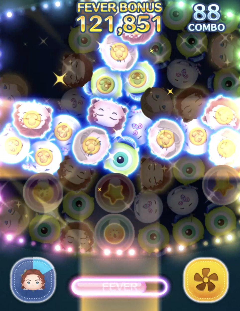 マレフィセント系の場合、短いチェーンを繋いでタイムボム狙いをするとスコアが伸びやすいツムと、ロングチェーン+ボムキャンセルで大消去でコインを稼ぐタイプがいます。