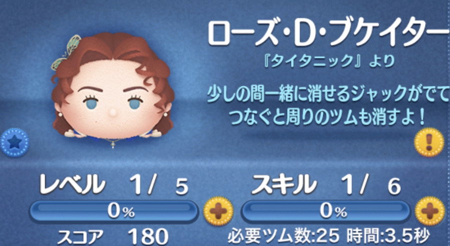 スキルレベル1 | 必要ツム数: 25 時間:3.5秒 |