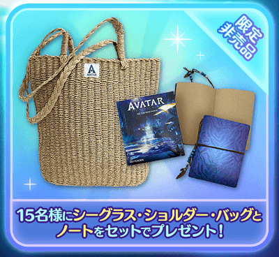 アバター新ツム登場記念Twitterキャンペーンに参加すると抽選で15名様に「シーグラスショルダーバッグ」「ノート」が当たります。