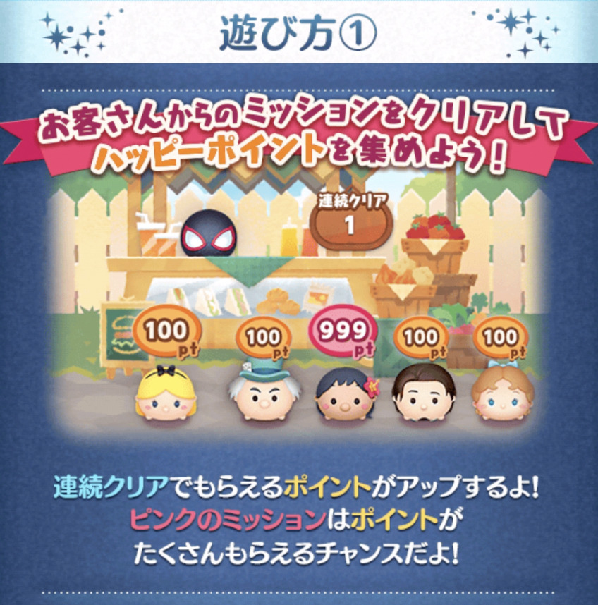 ツムツムのお店やさんでは、お客さんから出されるミッションをクリアしてポイントを貯めていきます。