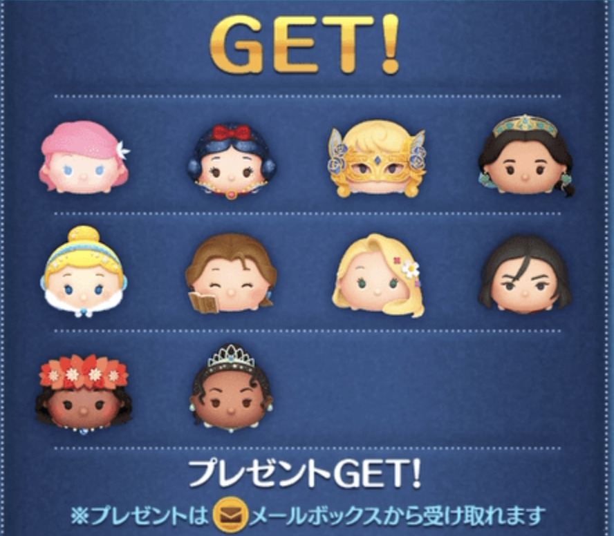 そうすることで、上記10体のプリンセスツムが入手できます。