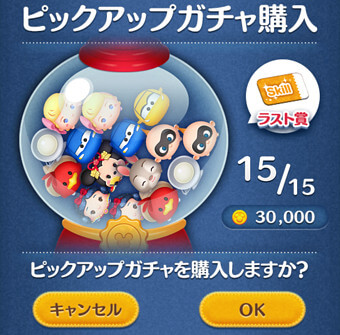 今回のピックアップガチャも15体のツムが入っています。そのため・・・