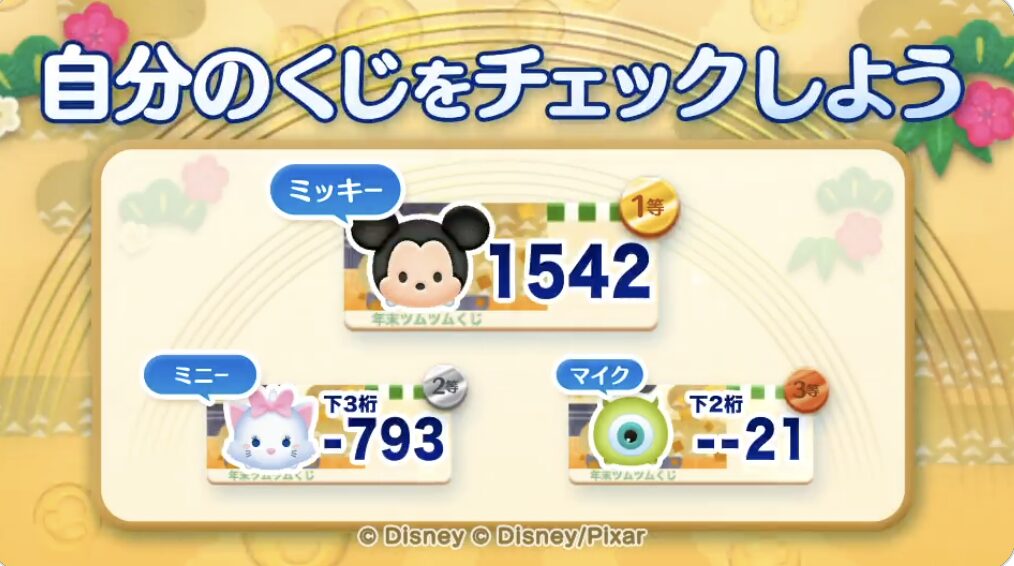 年末ツムツムくじ2023-2024当選番号一覧