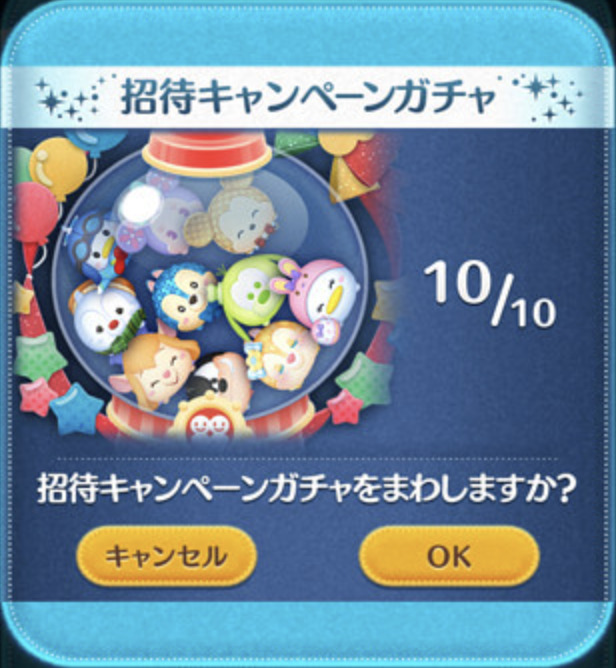 この友達招待キャンペーンは、招待した友達がツムツムを遊ぶことでキャンペーンガチャを回せます。