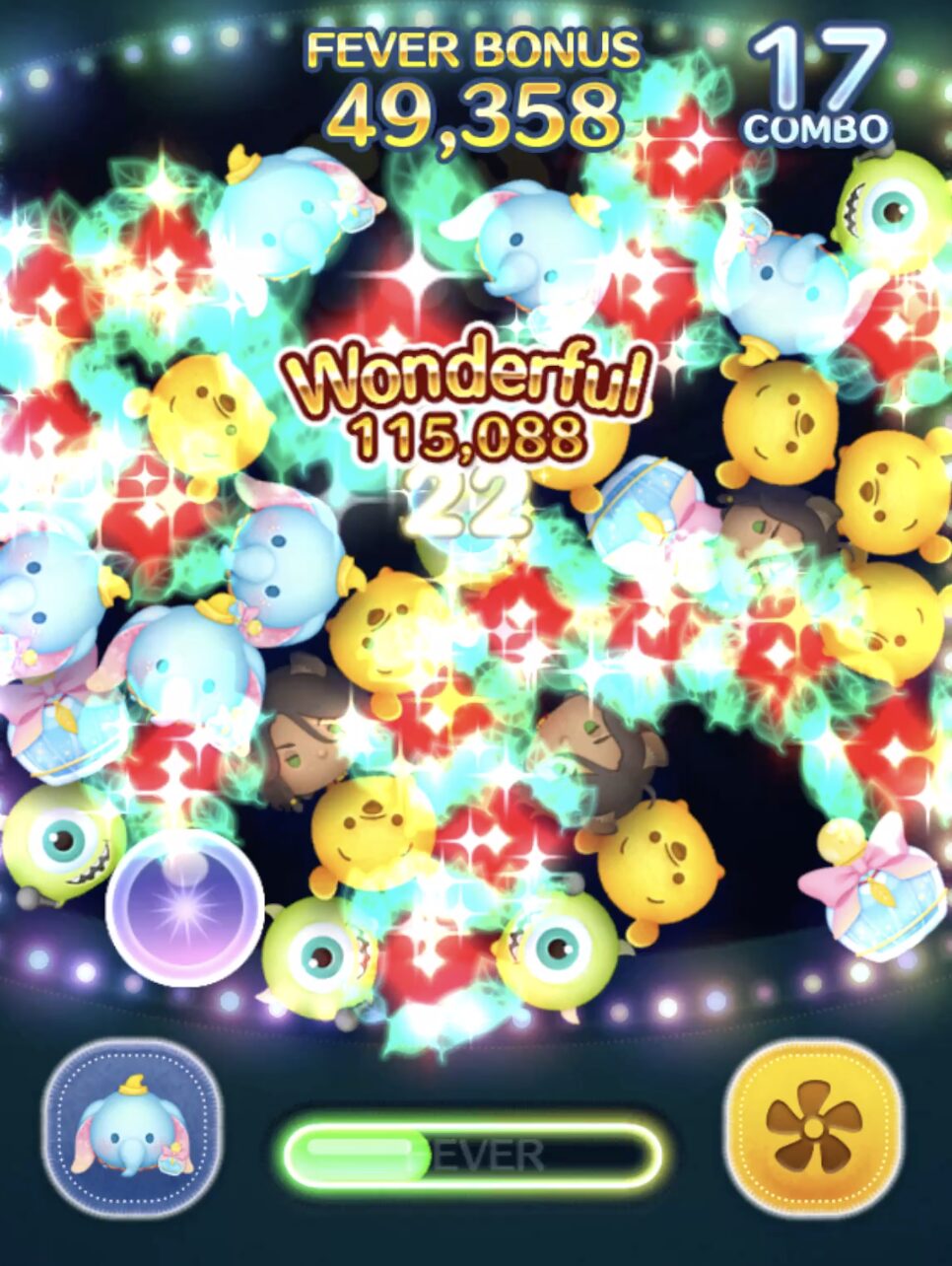 「パフュームダンボ(チャーム)」のスキルは、ランダムでツムを消すよ!という消去系スキル。