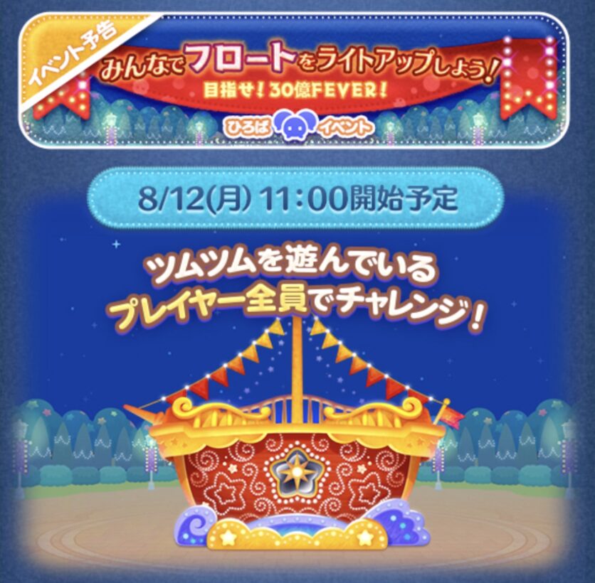 2024年8月ツムツム広場(ひろば)イベント「みんなでフロートをライトアップしよう目指せ30億フィーバー」が開催されます。
