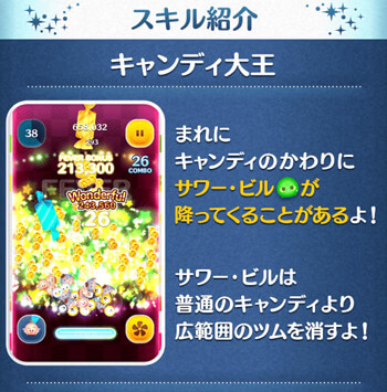 キャンディ大王のスキル効果中、まれにサワー・ビルが降ってくることもあります。