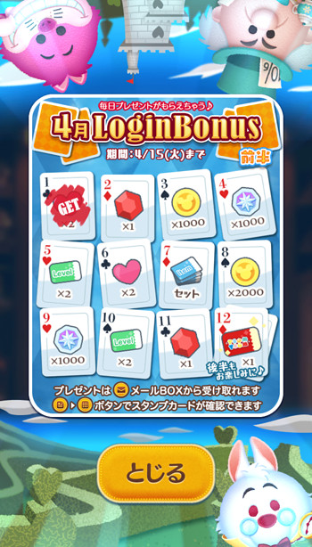 ツムツム2025年4月ログインボーナス前半概要