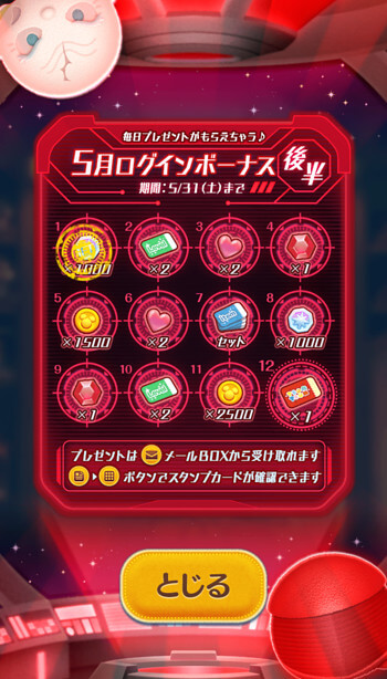 2025年5月ログインボーナス後半の報酬はコインやルビー。
