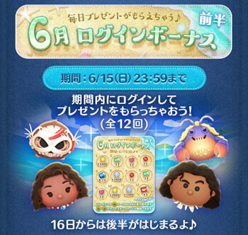 ツムツム2025年6月ログインボーナス前半報酬一覧