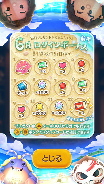 2025年6月1日0時より、ログインボーナス後半が始まりました。