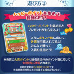 まずはハッピーポイントを貯めたら誰でももらえる報酬なのですが、これはポイントを指定数貯めればもらえるので何も難しいことはありません。