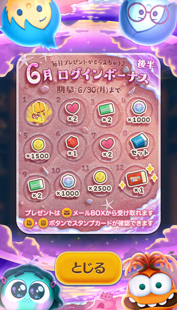 ツムツム2025年6月ログインボーナス前半報酬一覧