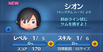 シオンは、斜めライン状にツムを消すよ!という消去系スキル。