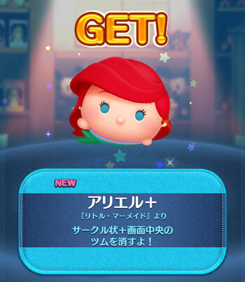 アリエル+は、ワッペンを入手できると「フィーバー発生時に小さいツムが発生」「たまにノーマルボムがスターボムになる」という効果があります。