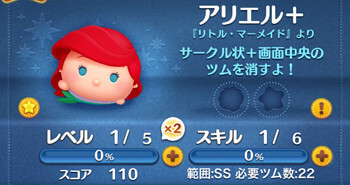 【ツムツム】アリエル+(プラス)の評価とスキルの使い方【ワッペンは強い】