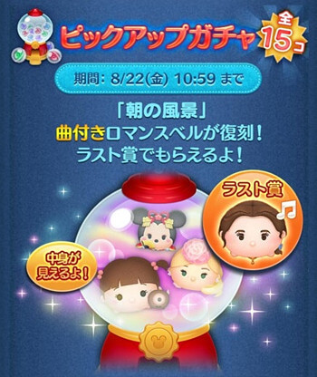 【ツムツム】2025年8月ピックアップガチャ3回目第238弾は引くべき?【ラスト賞は曲付きロマンスベル】