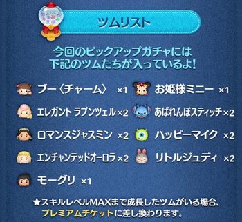 ツムツムピックアップガチャ一覧
