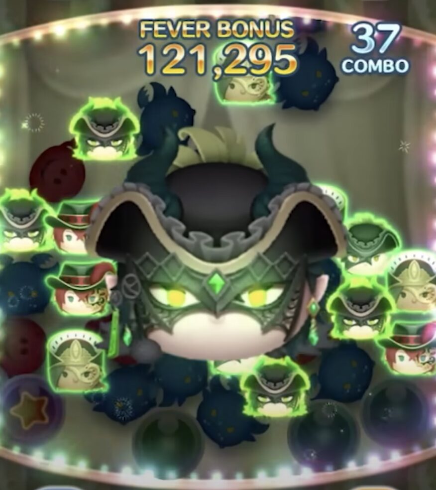フィーバータイム中はサブツム1種が寮生ツムに変化し、つなげるとマレウスを中心に縦ラインでツムを消去します。