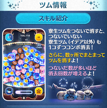 スキル発動に必要なツム数 | 23~18 ※スキルレベルが上がる毎に減少 |