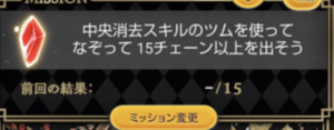 5枚目13個目のミッション「中央消去スキルのツムを使ってなぞって15チェーン以上を出そう」の攻略法です。