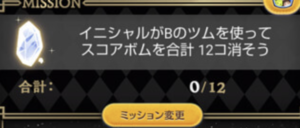 このミッションは、イニシャルがBのツムでスコアボムを3個消すとクリアになります。