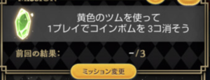 このミッションは、黄色のツムでコインボムを3個消すとクリアになります。