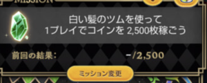 7枚目11個目のミッション「白い髪のツムを使って1プレイでコインを2500枚稼ごう」の攻略法です。
