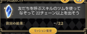 このミッションは、友だちを呼ぶスキルのツムで22チェーンするとクリアになります。
