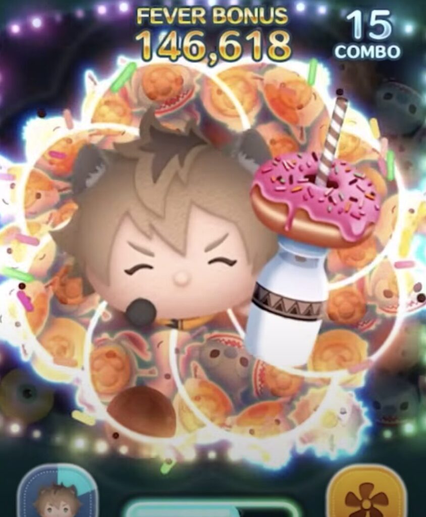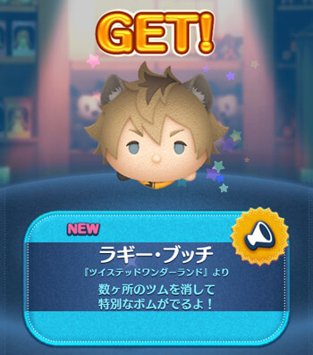 ラギーブッチは、数ヶ所のツムを消して特別なボムがでるよ!という消去系&ボム発生系合う消失