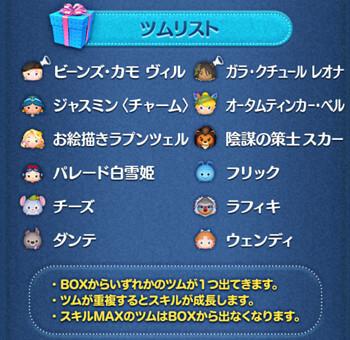 これにより、セレクトBOXのツムの確率も表示されることになります。