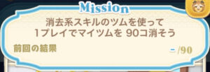 このミッションは、消去系スキルのツムでマイツムを140個消すとクリアになります。