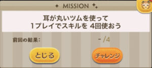 このミッションは、耳が丸いツムでスキルを4回使うとクリアになります。