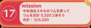 このミッションは、中央消去スキルのツムでツムを合計5320個消すとクリアになります。