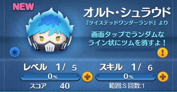 「オルトシュラウド」のスキルは、「 画面をタップするとタップしたところを通過するライン状にツムを消すよ!」という消去系スキル。